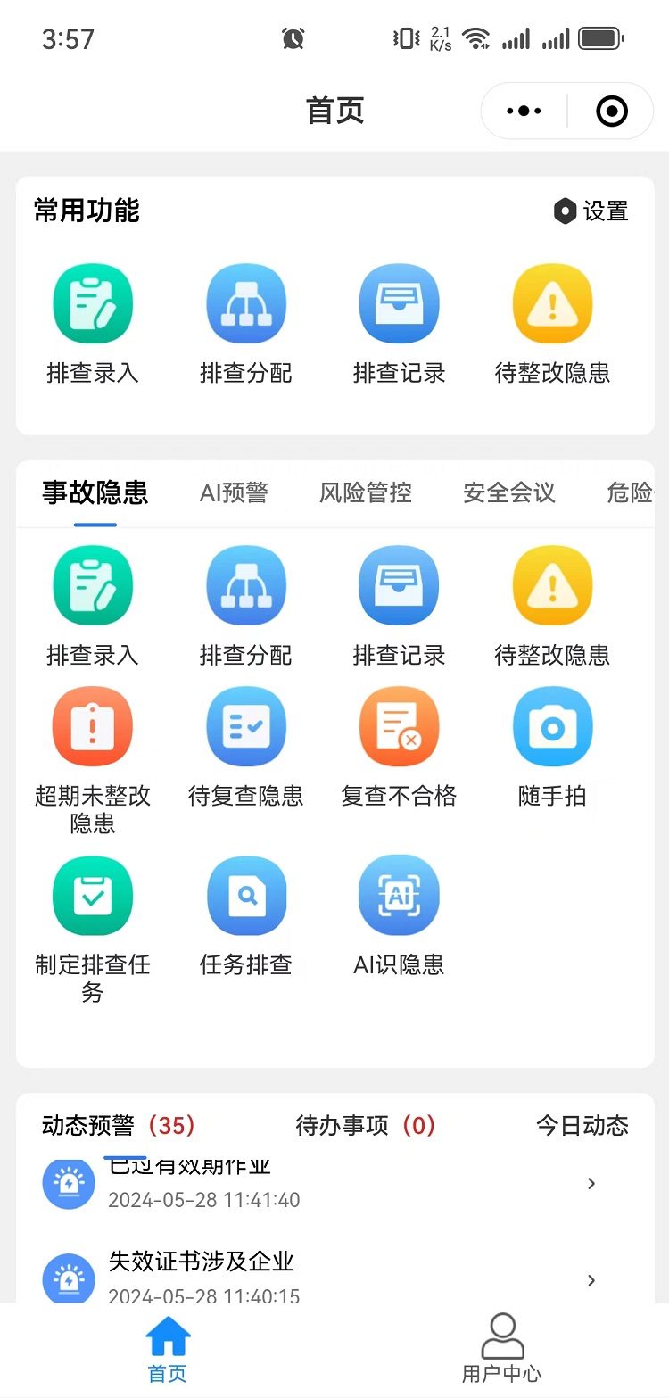 通過(guò)信息化流程運(yùn)轉(zhuǎn),借力班前會(huì)管理、風(fēng)險(xiǎn)巡查、隱患排查、工作待辦事項(xiàng)提醒等,有序規(guī)范日常工作執(zhí)行流程,實(shí)現(xiàn)安全管理合法合規(guī),降低企業(yè)安全管理經(jīng)營(yíng)風(fēng)險(xiǎn)。