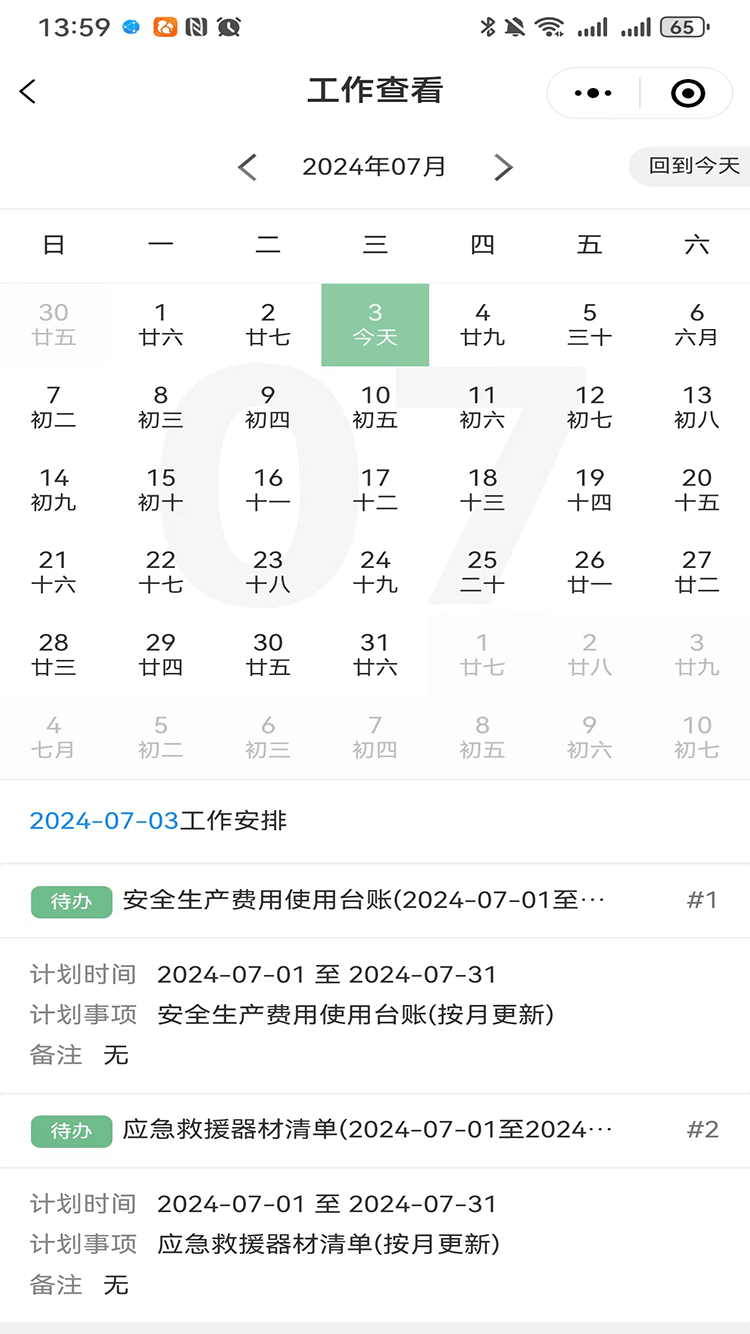 可根據(jù)需要及規(guī)則設(shè)定按月建立安全工作計(jì)劃,為安全管理提供便捷的管理工具。